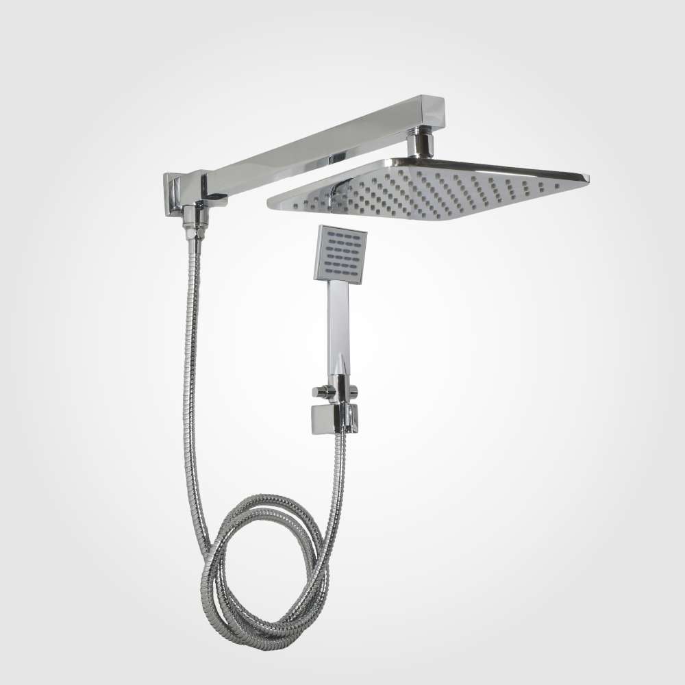 • Chuveiro Dom com válvula de desvio, flexível metálico cromado de 1,75m e ducha manual com suporte de fixação.
