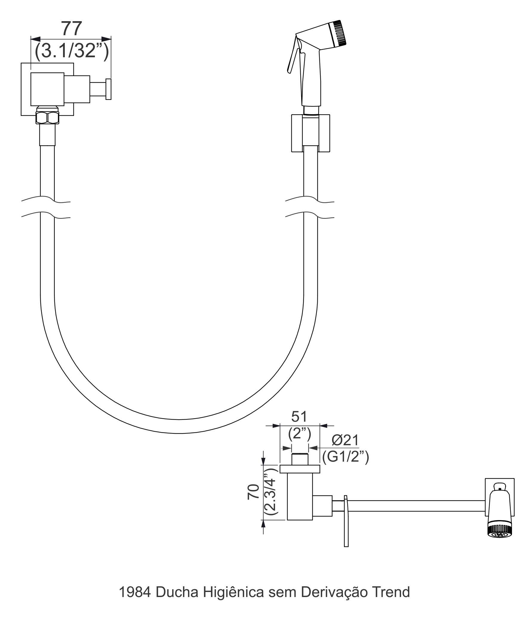 - Acompanha mangueira flexível metálica cromada de 1,20m.
