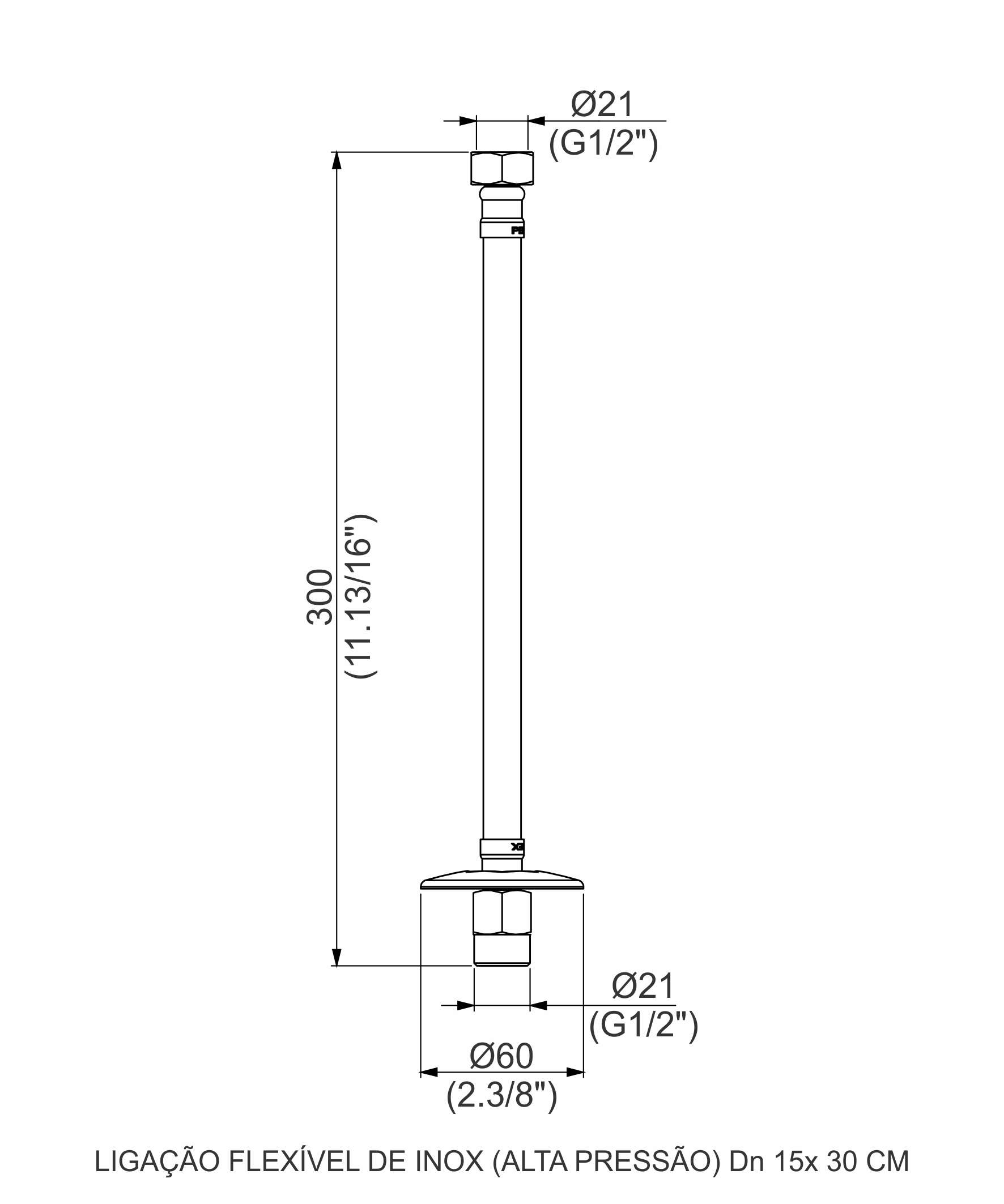LIGAÇÃO FLEXÍVEL DE INOX ( ALTA PRESSÃO) DN15 X 30 CM