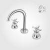Misturador completo: parte bruta (registros) e peças cromadas (bica, canoplas e volantes de abertura).