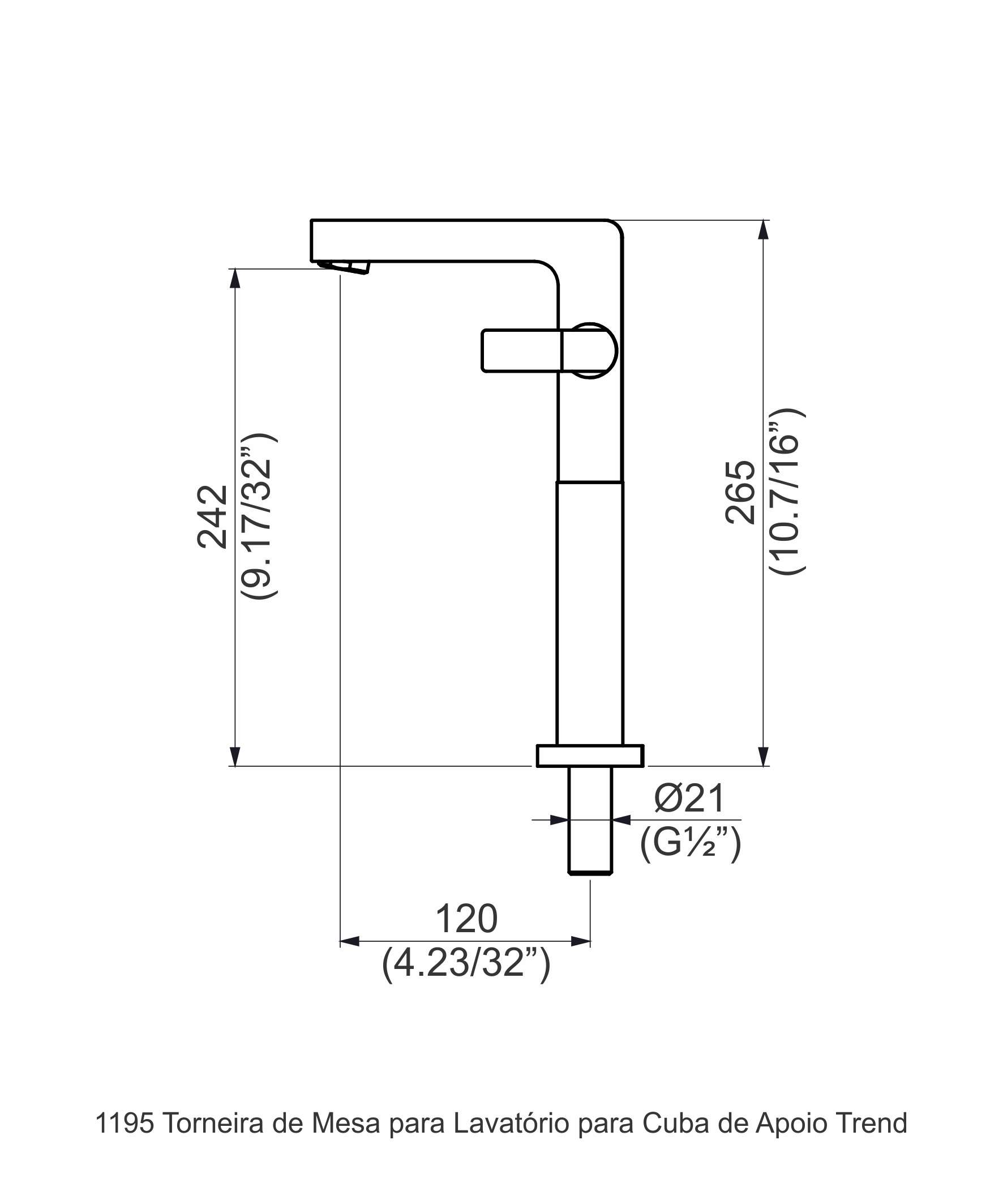 - Torneira metálica robusta, com design diferenciado e moderno indicada para cubas de apoio.