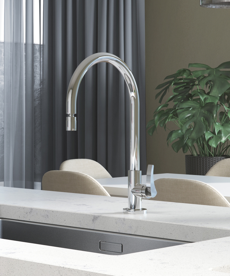 - Arejador articulável, que além de realizar a filtragem de impurezas, proporciona a garantia de economia de água, maior conforto para as mãos, permite o direcionamento do fluxo evitando respingos na cuba e desperdício de água.