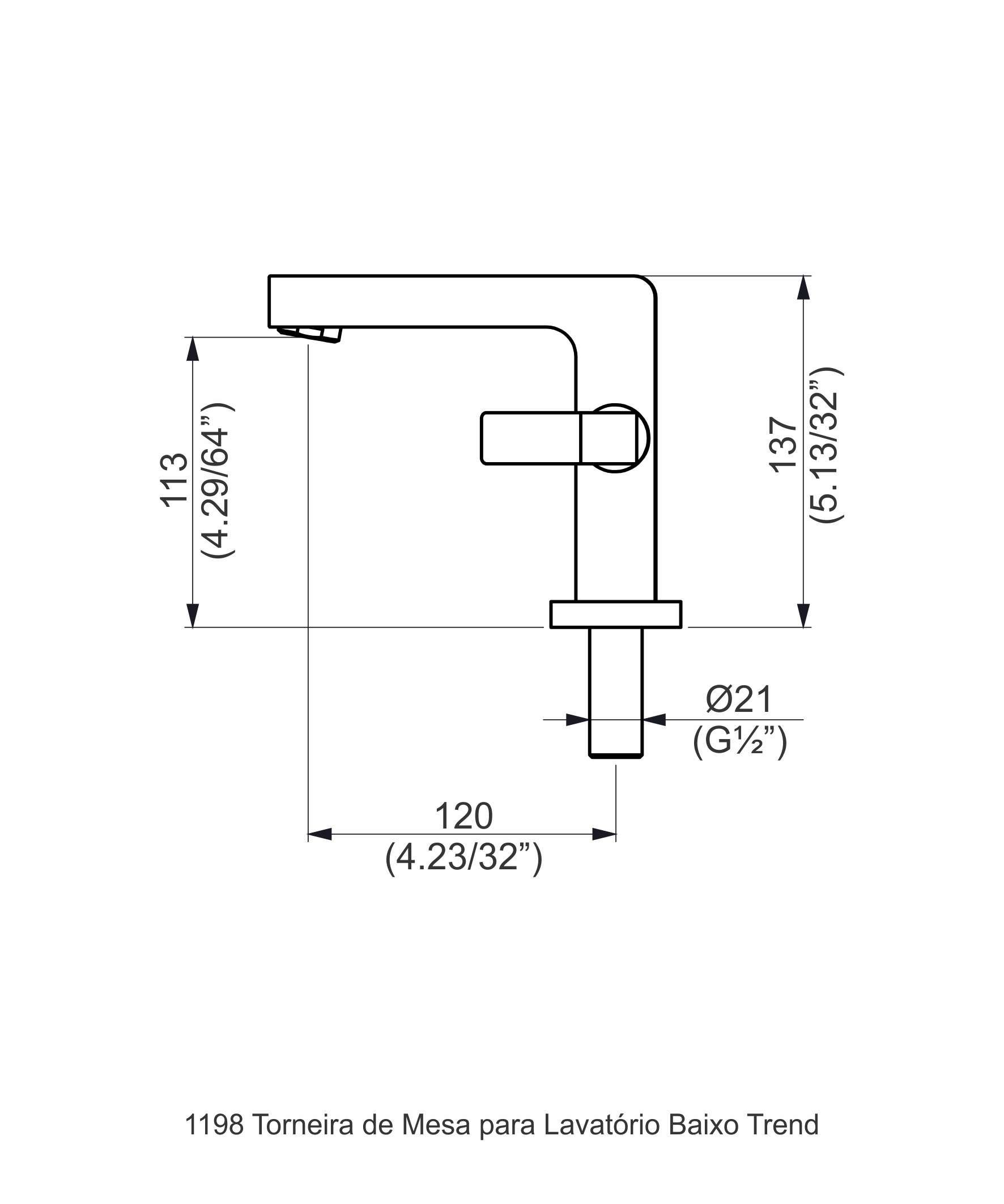 - Torneira metálica robusta, com design diferenciado e moderno.